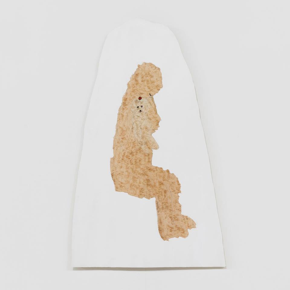 Mitsunori Kimura (b.1983) attempts to symbolize life and death by carving surface of wood and creating hair-like substance. The artist suggests his own version of form of human beings, which are mostly represented half-animal and apelike creature, and keeps pondering questions about fundamental meaning of human relationship and nature of ‘being human beings (living as a human being)’.
